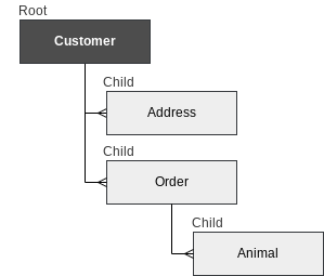 This child of Customer can in turn have children of it’s own. Here we define a list of Animals for example: